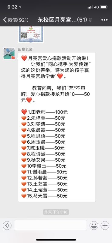 在全区防控疫情的关键时刻。2月19日,月亮宫舞蹈艺术学校吉哲校长主动联系区慈善协会,在区慈协的指导下,月亮宫及时召开微信群校务会,就捐款事宜做出了周密安排布署,随后在全校教职工和学员家长中发布抗疫爱心捐款倡议书。在校领导带头下,教职工积极参与,全体学员和家长们积极响应,更感人的是很多小朋友主动拿出了自己的零花钱,积极为抗击疫情贡献自己的一份绵薄之力!捐款小额有10元,20元,50元;大额有100元,200元,300元,甚至还有500元……两天时间里,全校师生及学生家长共计1000多人,纷纷通过手机微信参与网络爱心捐款,截止目前已捐善款达到5万多元。爱心无大小,善行彰美德。这每一笔善款,都是一颗爱心的涌动,都是对防控疫情的有力支援!